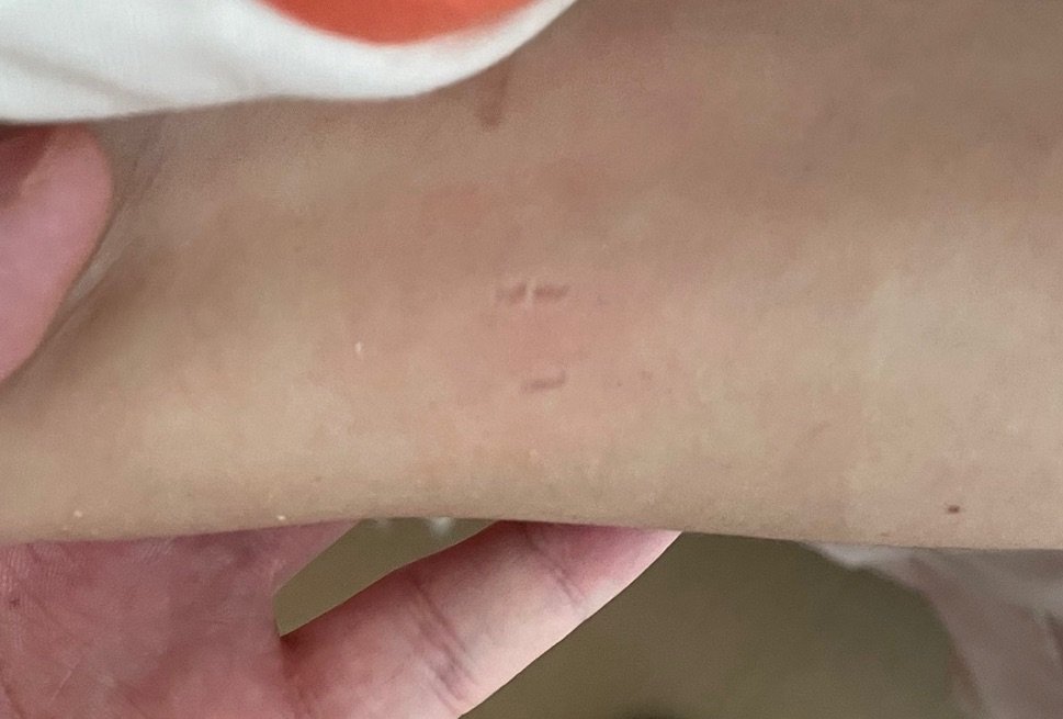 今天菊菊抱起来玉子后,玉子就脸贴在菊菊的胳膊上,然后咬了个牙印,哈哈哈哈哈哈,特别可爱的兔子牙印